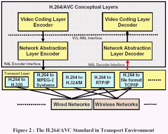 根據(jù)圖2,H.264/ AVC在不同的概念層上區(qū)分開來,視頻編碼層(VCL)和網(wǎng)絡(luò)抽象層(NAL)。VCL和NAL都是H.264/ AVC標準的一部份。VCL對視頻編碼信號進行了有效的說明。H.264/AVC的NAL定義了視頻編碼和外面世界之間的接口。它通過NAL單元來支持大部分基于包的網(wǎng)絡(luò)。在NAL解碼接口,它假設(shè)NAL單元已經(jīng)通過解碼命令被發(fā)送,數(shù)據(jù)包要么被正確接受,要么丟失,如果有效載荷里包括了錯誤的數(shù)據(jù)流,NAL單元的頭就會產(chǎn)生一個錯誤的標記。由于標記可以用于不同的目的,因此它并不作為標準的一部分。然而,它提供一個在整個網(wǎng)絡(luò)里提供錯誤指示信號的方法。此外,接口規(guī)范要求標準化主體有責任對不同傳送協(xié)議進行描述。NAL單元在不同傳輸系統(tǒng)的精確傳輸和加密,例如H.320,MPEG-2系統(tǒng)和RTP/IP,也同樣在h.264/AVC標準化的范疇以外。在標準里面正式定義了NAL解碼接口,然而,VCL和NAL之間的接口只是概念上的定義,主要是幫助描述和分開VCL和NAL的任務。
