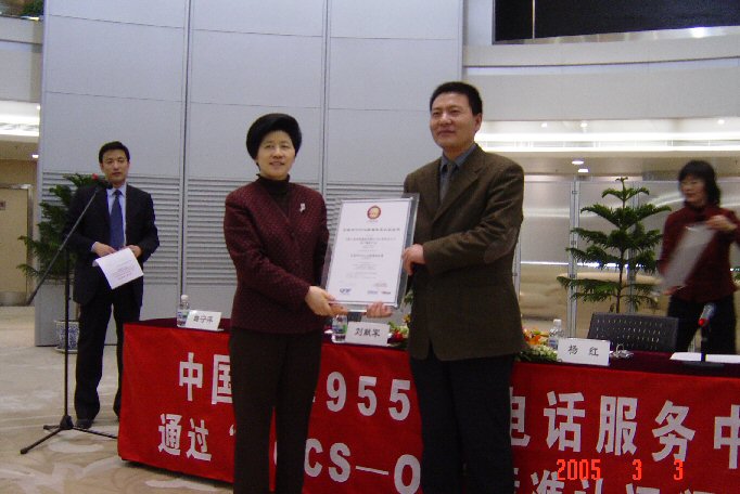 China)組委會聯(lián)合授予的"2004中國最佳呼叫中心"榮譽稱號。