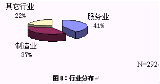 行業(yè)分布,來自服務(wù)業(yè)和競(jìng)爭激烈的制造業(yè)企業(yè)的居多,其中的服務(wù)業(yè)有金融、電信、網(wǎng)絡(luò)信息和教育等。參加調(diào)查的著名公司有:中國電信、聯(lián)通、建設(shè)銀行、華夏證券、康佳、小天鵝、潤迅、海信、廣東福地、一汽、萬科物業(yè)等。