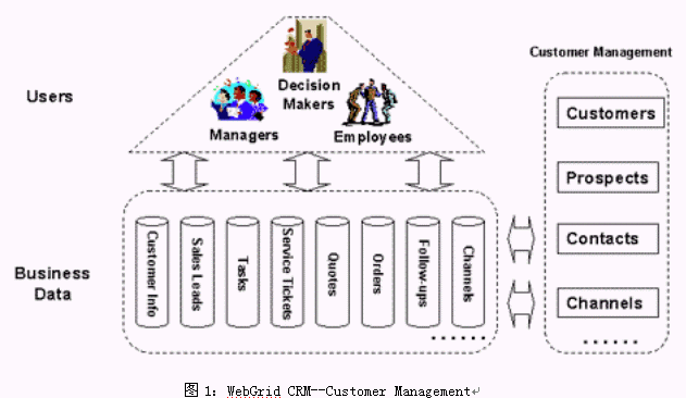 WebGrid CRM解決方案采用集中化的信息庫,這樣所有與客戶接觸的雇員可獲得實(shí)時(shí)的客戶信息,而且使得各業(yè)務(wù)部門和功能模塊間的信息能統(tǒng)一起來。