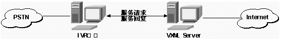 在這里VXML是指Voice XML的服務(wù)器,它負(fù)責(zé)接收IVR轉(zhuǎn)發(fā)過(guò)來(lái)的用戶按鍵請(qǐng)求,并返回信息數(shù)據(jù)和操作指令。