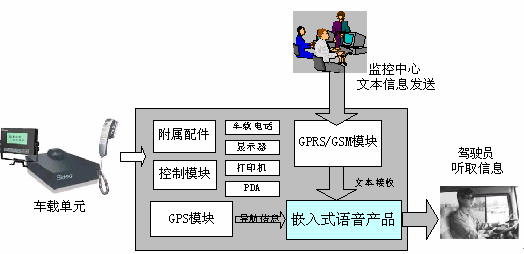 首先,當(dāng)車載GPS單元接收到由監(jiān)控中心發(fā)來的調(diào)度、提醒、叫車等信息時(shí),語音合成會(huì)伴隨顯示器上的顯示,同步將文字讀出,轉(zhuǎn)變?yōu)榍逦鲿车脑捯,這樣一方面司機(jī)不用特意在駕駛中注意顯示屏的文字內(nèi)容而同樣可以及時(shí)獲取信息的內(nèi)容,另一方面也減少了因?yàn)榉稚耨{駛而引發(fā)的交通安全隱患。
