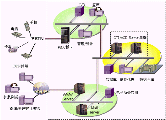 ___在專用交換機(jī)+ACD的基礎(chǔ)上擴(kuò)展路由和統(tǒng)計功能,開放的CTI-Link接口,采用CTI技術(shù)將通信與計算機(jī)結(jié)合。____