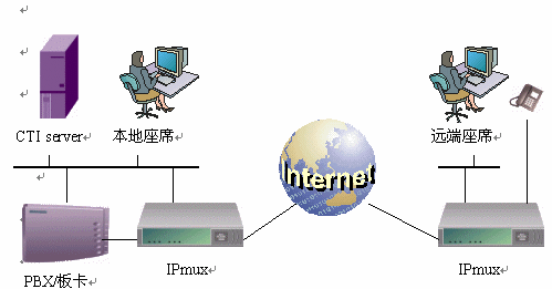 針對目前呼叫中心部署過程中對于IP遠(yuǎn)程座席的需求,北京佳訊飛鴻電氣有限責(zé)任公司推出了系列IPmux設(shè)備。 用戶只需將原有座席的電話線插到IPmux設(shè)備上,通過互聯(lián)網(wǎng),即可將該座席延伸到全球任意地點(diǎn)。