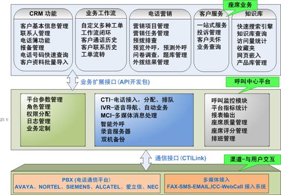 呼叫中心通信平臺,包含了交換機(PBX)、CTI服務(wù)器、IVR服務(wù)器、傳真服務(wù)器、全程錄音設(shè)備等幾個部分,是客服中心實施的基礎(chǔ)。
