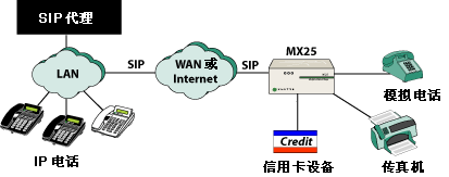 MX25 可以提供模塊化 SIP 網(wǎng)關(guān)的功能,這對(duì)于企業(yè)的許多應(yīng)用程序是很有益的。其撥號(hào)計(jì)劃實(shí)現(xiàn)了多個(gè) SIP 服務(wù)器(內(nèi)部和外部)以及電話電路之間的路由,這使得它幾乎可以在每一個(gè) VoIP 應(yīng)用程序中工作。