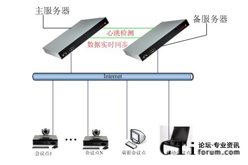 一般情況,服務(wù)器出現(xiàn)故障,如技術(shù)人員在現(xiàn)場(chǎng)的情況下,恢復(fù)服務(wù)器正常至少需要10分鐘、幾小時(shí)甚至更長(zhǎng)時(shí)間。從實(shí)際經(jīng)驗(yàn)上看,除非是簡(jiǎn)單地重啟服務(wù)器(可能隱患仍然存在),否則往往需要幾個(gè)小時(shí)以上。而如果技術(shù)人員不在現(xiàn)場(chǎng),則恢復(fù)服務(wù)的時(shí)間就更長(zhǎng)了。因此對(duì)于網(wǎng)絡(luò)視頻會(huì)議實(shí)時(shí)性來(lái)說(shuō),用戶是很難容忍這樣長(zhǎng)時(shí)間的服務(wù)中斷。為了有效的解決這個(gè)問(wèn)題,華平率先推出AVCON TNC雙機(jī)熱備系統(tǒng)(Two-Node Cluster),避免長(zhǎng)時(shí)間的服務(wù)中斷,保證會(huì)議系統(tǒng)長(zhǎng)期、可靠的運(yùn)行,保障用戶重要會(huì)議的順利完整召開(kāi)。