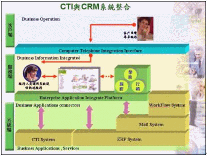 但傳統(tǒng)的CTI系統(tǒng)其重點(diǎn)乃是著重在服務(wù)工作的自動(dòng)化方面,只提供簡單的客戶來電訊息提示,對(duì)于客戶進(jìn)一步的背景資料、嗜好、購買需求及歷史往來記錄并不清楚也無法實(shí)時(shí)得知,更別說想藉由CTI系統(tǒng)來提供客戶個(gè)人化的服務(wù)、有效節(jié)省通話時(shí)間、刺激其潛在的購買需求,為了達(dá)成上述的目標(biāo),唯有將CTI系統(tǒng)與CRM系統(tǒng)進(jìn)行整合,如此,客戶服務(wù)的質(zhì)量才可能達(dá)成某個(gè)程度的提升,而良好的客戶關(guān)系管理也將是未來呼叫中心運(yùn)作成功與否的關(guān)鍵所在。