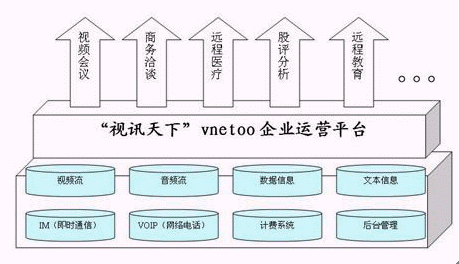"視訊天下"VNETOO運(yùn)營平臺(tái)就是應(yīng)用了新一代完美網(wǎng)絡(luò)視頻會(huì)議技術(shù)的典范,它具有優(yōu)質(zhì)的音視頻效果和強(qiáng)大的數(shù)據(jù)功能,是集"視頻+語音+數(shù)據(jù)+IM(即時(shí)通信)+VOIP(網(wǎng)絡(luò)電話)+計(jì)費(fèi)系統(tǒng)+后臺(tái)管理"的基于IP網(wǎng)絡(luò)世界一流視訊服務(wù)提供平臺(tái),它革命性地開創(chuàng)了視訊運(yùn)營領(lǐng)域的全新模式。