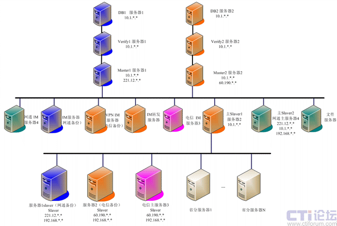 系統(tǒng)平臺(tái)采用集群化部署,實(shí)現(xiàn)跨網(wǎng)絡(luò)分布式,從而在應(yīng)用中實(shí)現(xiàn)南北網(wǎng)通電信的互聯(lián)互通,以及專(zhuān)網(wǎng)用戶的無(wú)障礙接入,實(shí)現(xiàn)方式如下圖所示: