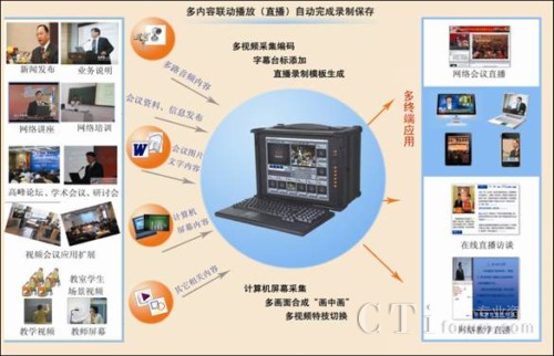 相比傳統(tǒng)的直播錄播系統(tǒng),經(jīng)緯中天支持多終端應(yīng)用的富媒體直播錄播系統(tǒng)突出了以用戶為中心,除了簡單的視頻直播,更加豐富地融合了多內(nèi)容媒體直播錄播功能,例如信息發(fā)布、圖文直播、互動交流、圖片報道等,同時以全FLASH富媒體模板形式全方位展示現(xiàn)場信息,更主要的是支持多終端應(yīng)用,不僅僅是傳統(tǒng)的PC、電視機,還可通過IPAD等多種平板電腦實現(xiàn)應(yīng)用,充分滿足了用戶的需求,極大地擴展了網(wǎng)絡(luò)視頻應(yīng)用范圍。