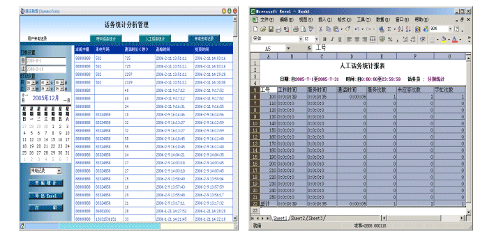 詳細的話務記錄和話務統(tǒng)計分析,可生成各類表、圖表,并可以到出為Excel報表。