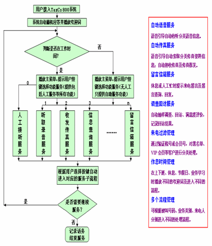 - 全天候24小時接受用戶服務,支持上下班、休息、節(jié)假日等作息時間管理,在工作時間或休息時間播放不同的歡迎引導詞及提供不同的服務;
