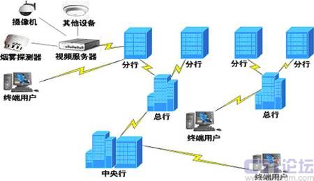 - 由于金融系統(tǒng)的機構(gòu)較多且分散,所以監(jiān)控中心可以分為若干級別,功能上相互獨立,但在資源管理上卻可以共享互聯(lián)。例如分行、總行、中央行這樣的級別嵌套,就可以設(shè)立3級模式,在每一級上都是一套功能完備的監(jiān)控系統(tǒng),并對上一級負(fù)責(zé),使得系統(tǒng)中任何一臺電腦,只要通過IE瀏覽器就能監(jiān)控到網(wǎng)絡(luò)中任何一個鏡頭。