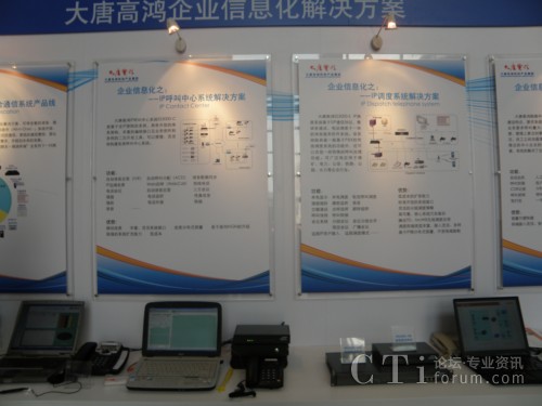 CTI論壇(ctiforum)9月21日消息(記者 楊?lèi)偅?記者從2009年中國(guó)國(guó)際信息通信展覽會(huì)了解到,在本次展會(huì)上,大唐高鴻以“通信新融合,引領(lǐng)企業(yè)信息化浪潮”為宣傳主題,宣告轉(zhuǎn)型升級(jí)為“企業(yè)信息服集成商”, 同時(shí)結(jié)合技術(shù)能力創(chuàng)新和商務(wù)模式創(chuàng)新,將戰(zhàn)略布局為向企業(yè)行業(yè)客戶提供更為完善的全方位信息化解決方案。