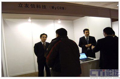 在隨會附設(shè)的展臺前,MyCRM更是受到不少參會企業(yè)的關(guān)注。圖為MyCRM咨詢顧問為參會企業(yè)家講解MyCRM系統(tǒng):