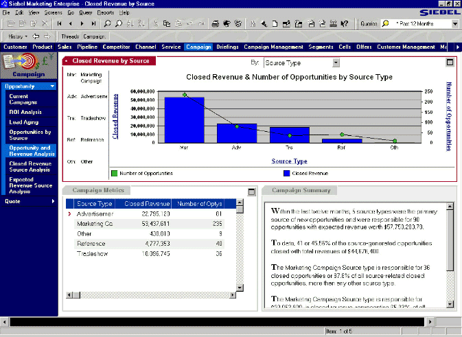 Siebel eBriefings 、Siebel eContent Services主要應用于對于大量商務信息的過濾和篩選。通常,企業(yè)職員需要花費大量的時間和精力搜尋他們所需要的數據與信息。Siebel eBriefings and Siebel eContent Services可以幫助企業(yè)職員利用四種不同的信息類型(個人信息、賬戶信息、競爭對手資料、公司狀況信息),從Internet 、extranet和intranet,搜集其所需要的個性化的信息資料。 Siebel eBriefings和Siebel eContent Services還可以與許多企業(yè)外部的搜索門戶系統(tǒng)進行集成與聯結,可從其上面獲得豐富的新聞信息、企業(yè)信息、及其他公開的信息資料。