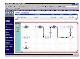Siebel eMarketing能夠使企業(yè)創(chuàng)建、執(zhí)行、評估其基于Web的市場營銷策略。利用Siebel eMarketing ,市場營銷人員可以對客戶信息進行綜合的分析與預測,對市場營銷策略和投資回報預期進行評估,并且能夠創(chuàng)建圖形化的統(tǒng)計分析,如圖三所示;能夠自動生成基于Web-Email的客戶交流機會并進行適當的促銷行動。Siebel eMarketing還可以為客戶提供人性化的主頁設計;進行個性化的Web促銷;基于客戶檔案信息進行新產品的直接或交叉推薦;同時還提供到Siebel eSales的超級聯接,當客戶對某種產品感興趣時,Siebel eMarketing可直接引導其聯接到Siebel eSales上。另外,企業(yè)營銷策略的設計者通過使用Siebel eSmartScript工具可以定制在線的客戶滿意度調查,同時還可以進行可視化的營銷策略工作流的設計。如圖四所示。