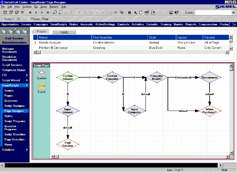 | 圖三. Siebel eMarketing綜合的客戶及市場分析 | 圖四. 使用Siebel eSmartScript工具設計市場營銷策略工作流程 |