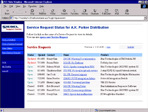 圖五. Siebel eService展示個性化的,動態(tài)的服務信息