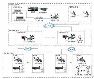 市局指揮中心利用本系統(tǒng)提供的功能,對各區(qū)/縣分局指揮中心及各派出所等進(jìn)行視頻監(jiān)視?蓪崿F(xiàn)現(xiàn)場畫面靈活切換、對遙控遠(yuǎn)端攝像機云臺,方便地組合顯示多路視頻畫面等。各區(qū)/縣指揮中心對本單位轄區(qū)進(jìn)行視頻監(jiān)視?蓪崿F(xiàn)現(xiàn)場畫面靈活切換、對遠(yuǎn)端攝像云臺遙控,方便地組合顯示多路視頻畫面等功能。