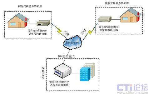 在保險公司數(shù)據(jù)交換控制中心配置一臺具有VPN功能的中心寬帶網(wǎng)路由器,每條ADSL配置一個具有VPN功能的小型寬帶網(wǎng)路由器,并通過設(shè)置路由器即可成功建立起VPN網(wǎng)絡(luò)。這種網(wǎng)絡(luò)結(jié)構(gòu)不但有效的節(jié)約了成本,而且日后系統(tǒng)的擴(kuò)容的成本也非常的低,每增加一個點(diǎn)只需要申請一條ADSL就可以了。