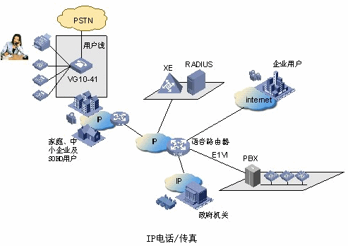 - 用戶通過(guò)VG 語(yǔ)音網(wǎng)關(guān)不僅可以接入到寬帶城域網(wǎng)上,而且還可以經(jīng)過(guò)Internet和國(guó)際用戶進(jìn)行IP電話/傳真通訊。