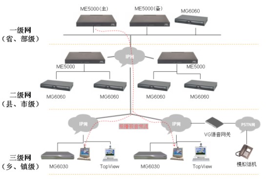 采用雙機熱備技術(shù),2臺ME5000通過IP網(wǎng)絡(局域網(wǎng)、廣域網(wǎng))在線熱備。出現(xiàn)意外情況時,備份ME5000將及時接替原MCU將會議繼續(xù)召開,不需要終端進行任何操作,保障會議延續(xù)。