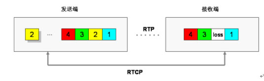 利用實(shí)時傳輸控制協(xié)議RTCP反饋信息提供丟包重發(fā)功能,當(dāng)接收端檢測到有丟包時,判定對端是否來得及進(jìn)行重發(fā),可以的話通過RTCP控制信道向發(fā)送端請求重發(fā)。
