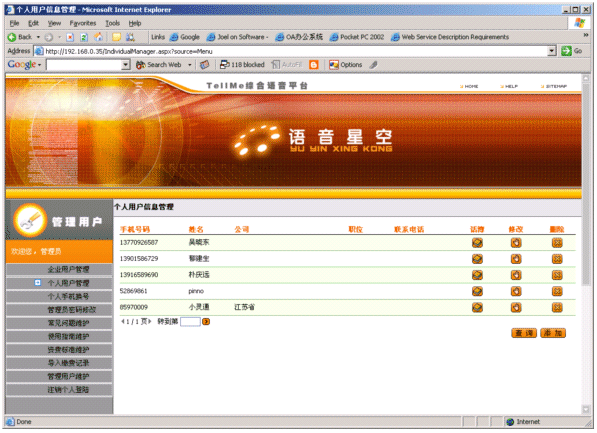 語音電話簿業(yè)務(wù)面對的客戶分為集團(tuán)客戶和個人客戶。