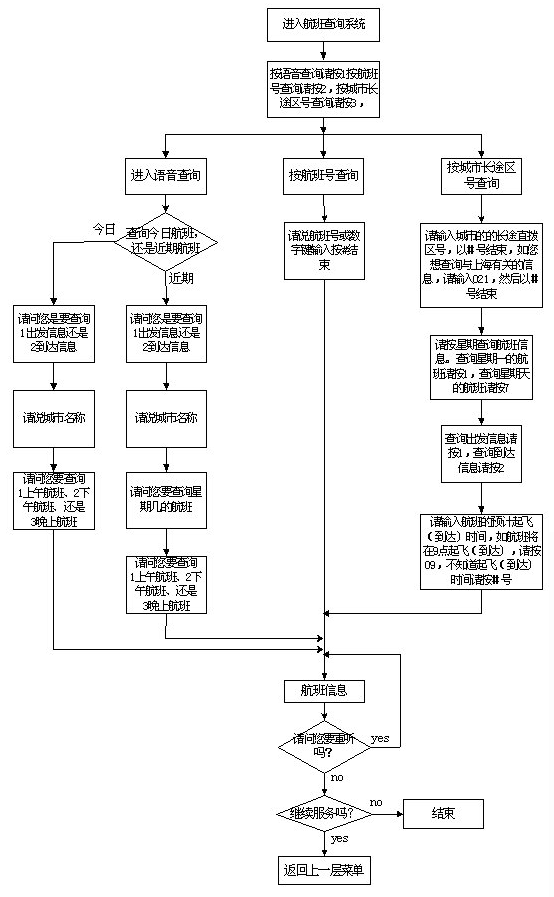該系統(tǒng)主要采用語(yǔ)音技術(shù)實(shí)現(xiàn)航班信息查詢,系統(tǒng)的主業(yè)務(wù)流程如圖一至五示。