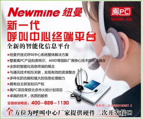 CTI論壇(ctiforum)4月28日消息(記者 張潔): 2011年4月12至13日,在五洲大酒店中國國際會議中心2011中國呼叫中心及企業(yè)通信大會(簡稱CTI呼叫中心大會)盛大召開,本屆展會展位近百個,規(guī)模2000余平方米,吸引了國內(nèi)外行業(yè)觀眾數(shù)千人次參與,并將成為2011年度國內(nèi)及亞太地區(qū)規(guī)模最大的呼叫中心和企業(yè)通信展會。紐曼騰飛公司在本屆展會上推出包括智能商務(wù)電話,錄音系統(tǒng),鳳PC(電話電腦一體機(jī))等多種行業(yè)領(lǐng)先產(chǎn)品,吸引了大批行業(yè)內(nèi)人員及普通消費(fèi)者的關(guān)注。尤其鳳PC的推出更是本屆展會的一大亮點(diǎn)。