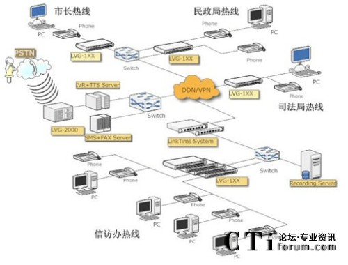 北京藍(lán)牙提供的12345政府熱線呼叫中心系統(tǒng)由呼叫中心主控系統(tǒng)、IVR語(yǔ)音導(dǎo)航系統(tǒng)、錄音系統(tǒng)、語(yǔ)音信箱系統(tǒng)、電話會(huì)議系統(tǒng)等多個(gè)模塊組成,將接入功能、導(dǎo)航功能、自動(dòng)語(yǔ)音查詢功能、人工座席服務(wù)功能、熱線轉(zhuǎn)接功能、信息資料處理緊密聯(lián)系起來(lái)。用戶撥打熱線電話后,可以根據(jù)需要選擇人工服務(wù)、自動(dòng)語(yǔ)音查詢、自動(dòng)留言,并能夠在幾種服務(wù)中來(lái)回切換或轉(zhuǎn)接其它熱線電話;所記錄的資料可以分門別類的進(jìn)行統(tǒng)計(jì)并形成報(bào)表,供相關(guān)部門進(jìn)行檢索查閱;意見處理完畢,可由座席主動(dòng)呼叫用戶,告知處理意見