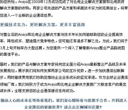 [Avaya/Nortel整合產(chǎn)品線渠道招募會10城市]