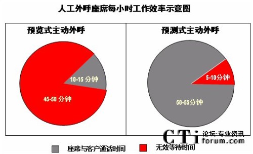 由于企業(yè)所獲取的原始客戶信息往往不是很精確,存在不少錯誤號碼、空號、電話答錄機(jī)、modem和傳真號碼等;另外,在撥號過程中也會出現(xiàn)許多無人接聽的電話等無效狀態(tài)。因此,預(yù)覽式外呼系統(tǒng)中,人工座席員的大量時間將被浪費(fèi)在這些無效的呼叫上。據(jù)統(tǒng)計,在預(yù)覽外呼系統(tǒng)中,人工座席員每小時用于和真正的用戶通話的時間一般不超過15分鐘。由此帶來的結(jié)果是人工座席員生產(chǎn)效率低下,企業(yè)需要大量的人工座席員和較長的周期才能完成一次外呼任務(wù)。而人工座席員又是呼叫中心成本的重要承載者,由此造成呼叫中心運(yùn)營成本的增加。