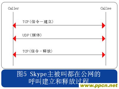 從上述流程圖可見,Skype的呼叫信令都采用TCP封裝,而媒體流則使用UDP封裝,當(dāng)有任何一方用戶位于限制UDP包的防火墻內(nèi)時(shí),媒體流就會(huì)采用TCP封裝。另外當(dāng)Skype用戶至少有一方位于私網(wǎng)內(nèi)時(shí),所有的信令和媒體消息都經(jīng)過一個(gè)或多個(gè)中間節(jié)點(diǎn)轉(zhuǎn)發(fā)。此時(shí)無需擔(dān)心用戶通話的媒體流因?yàn)榻?jīng)過中間節(jié)點(diǎn)轉(zhuǎn)發(fā)而被竊聽,因?yàn)镾kype采用了對消息進(jìn)行端到端加密的機(jī)制。