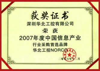 2007年1月16日,由中國(guó)計(jì)算機(jī)用戶協(xié)會(huì)(簡(jiǎn)稱CCUA)主辦的“中國(guó)計(jì)算機(jī)用戶協(xié)會(huì)2006年度企業(yè)及產(chǎn)品推介頒獎(jiǎng)大會(huì)” 在北京世紀(jì)金源大飯店隆重召開(kāi),通過(guò)對(duì)中國(guó)境內(nèi)從事IT產(chǎn)品生產(chǎn)、銷(xiāo)售、集成和服務(wù)企業(yè)的經(jīng)營(yíng)規(guī)模、服務(wù)能力、產(chǎn)品使用效果、企業(yè)誠(chéng)信和持續(xù)發(fā)展能力等多項(xiàng)指標(biāo)進(jìn)行綜合評(píng)定,揭曉了中國(guó)信息產(chǎn)業(yè)2006年度優(yōu)秀企業(yè)評(píng)選與產(chǎn)品推介活動(dòng)結(jié)果。華北工控憑借其在業(yè)內(nèi)深入人心的影響,再次獲得“2006年度中國(guó)信息產(chǎn)業(yè)誠(chéng)信企業(yè)獎(jiǎng)”和“2007年度中國(guó)信息產(chǎn)業(yè)行業(yè)采購(gòu)首選品牌”。