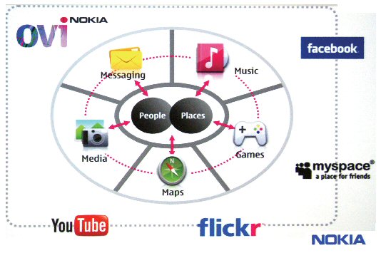 諾基亞的鮮明主張是:移動互聯(lián)網(wǎng)的發(fā)展與推進(jìn),必須最大限度地開發(fā)融合“人”與“地”的移動應(yīng)用,突顯互聯(lián)網(wǎng)所沒有的一些特性,而絕不能簡單地將互聯(lián)網(wǎng)的應(yīng)用照搬到手機(jī)上。