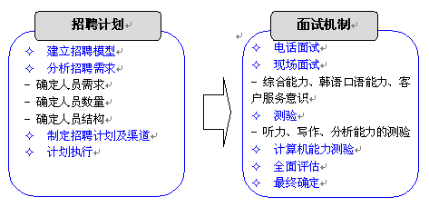 東軟呼叫中心充分挖掘東北地區(qū)豐富的韓語(yǔ)人才資源,通過(guò)多種招聘渠道滿(mǎn)足項(xiàng)目的人才需求。東軟自身的教育機(jī)構(gòu)--東軟信息學(xué)院也可以培養(yǎng)專(zhuān)業(yè)的韓語(yǔ)人才,另外,東軟信息學(xué)院與韓國(guó)某大學(xué)進(jìn)行戰(zhàn)略合作,通過(guò)為韓國(guó)留學(xué)生提供呼叫中心實(shí)習(xí)機(jī)會(huì)及漢語(yǔ)培訓(xùn)等,方式,吸引數(shù)名高素質(zhì)韓國(guó)大學(xué)生加入呼叫中心,充分滿(mǎn)足該項(xiàng)目對(duì)專(zhuān)業(yè)人才的需求。
