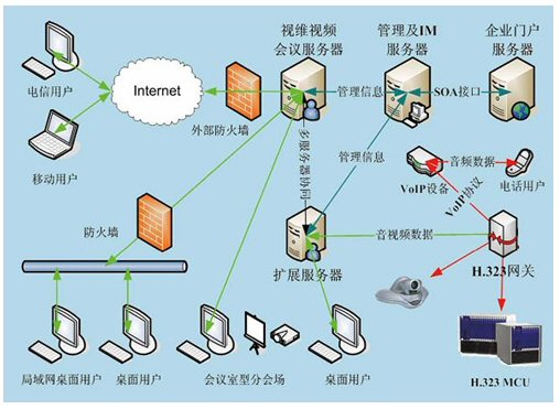 視維系統(tǒng)是一個(gè)基于IP網(wǎng)絡(luò)的綜合業(yè)務(wù)通訊平臺(tái),通過(guò)多網(wǎng)絡(luò)接入方式實(shí)現(xiàn)網(wǎng)通、電信、聯(lián)通等用戶(hù)間高速互通;通過(guò)H.323模塊將企業(yè)內(nèi)部原有的硬件設(shè)備與視維系統(tǒng)鏈接起來(lái),有效的節(jié)約了投資;其他如SIP模塊,短信模塊,固網(wǎng)電話接入等都可以根據(jù)用戶(hù)需要進(jìn)行擴(kuò)展。視維系統(tǒng)可以支持分布式視頻服務(wù)器集群,可利用企業(yè)內(nèi)部網(wǎng)絡(luò)或者互聯(lián)網(wǎng)構(gòu)建超大規(guī)模企業(yè)綜合通訊平臺(tái)。基于“面向服務(wù)體系架構(gòu)(SOA)”設(shè)計(jì)架構(gòu),實(shí)現(xiàn)很靈活地方便地與其業(yè)務(wù)系統(tǒng)如OA,HR,CRM,