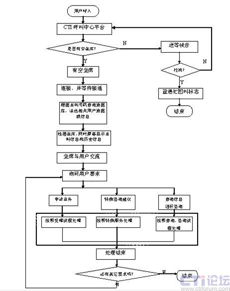 直接人工業(yè)務(wù)處理流程是指:用戶撥入服務(wù)中心后,由坐席員直接與用戶進(jìn)行語(yǔ)音交流,完成用戶要求的服務(wù)方式的工作流程。其流程圖如下: