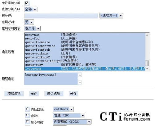 根據(jù)需要,用戶可以自己設(shè)定不同的語音以及不同的路由選擇,客戶呼入后就可以轉(zhuǎn)移到不同的服務(wù)組甚至不同的企業(yè)。