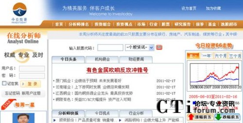深圳今日投資財經(jīng)資訊有限公司是一家致力于為投資者提供專業(yè)證券數(shù)據(jù)統(tǒng)計和個性化證券資訊的服務提供商。今日投資按照國際標準對70余家券商研究所,1800名一線分析師的研究成果進行深入加工和數(shù)據(jù)提煉,經(jīng)過多年的積累,建立了國內(nèi)最早、最全、最專業(yè)的證券投資分析數(shù)據(jù)庫,并充分借鑒國內(nèi)外先進的投資方法,獨創(chuàng)出三眼投資統(tǒng)計分析法,分別從基本面、技術面、機構認同度三個方面,對個股、行業(yè)、市場進行各種綜合數(shù)據(jù)統(tǒng)計和研究分析,依托強大的網(wǎng)絡資源和合作渠道,通過互聯(lián)網(wǎng)、移動互聯(lián)網(wǎng)、手機增值業(yè)務、雜志媒體、電視媒體、廣播電臺等渠道為投資者提供各具特色的專業(yè)數(shù)據(jù)統(tǒng)計和個性化證券資訊服務。目前今日投資的產(chǎn)品有:在線分析師、好股網(wǎng)、金融E家、上市公司市值管理系統(tǒng)、手機炒股系統(tǒng)、行情分析師、基金經(jīng)理調(diào)查、證券導刊等。
