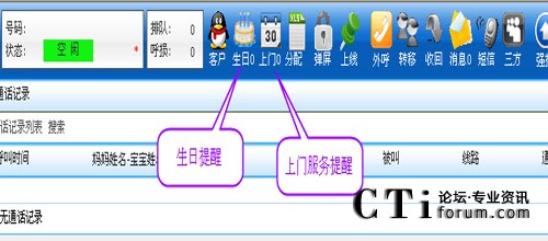 2、號(hào)碼歷史記錄自動(dòng)查詢(xún),寶貝媽媽聯(lián)絡(luò)情況一點(diǎn)即知,并配合特別設(shè)計(jì)的母嬰客戶(hù)信息管理系統(tǒng),實(shí)現(xiàn)來(lái)電、去電自動(dòng)彈屏,業(yè)務(wù)種類(lèi)、聯(lián)系意向、用戶(hù)類(lèi)型、消費(fèi)能力同時(shí)呈現(xiàn);