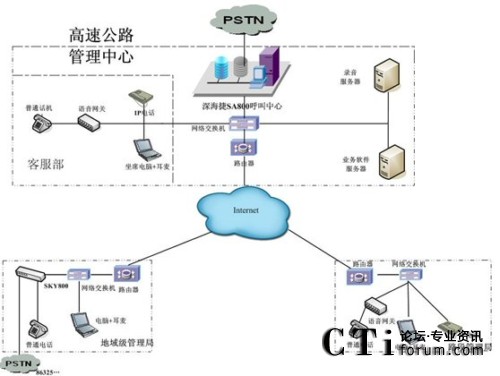 3)統(tǒng)一組網(wǎng):高速公路的地域特點(diǎn),要求省級、地域級的呼叫中心具有靈活的組網(wǎng)方式和統(tǒng)一的信令。例如:No.7信令組網(wǎng)。