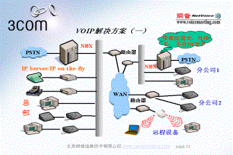 IP電話作為一種新技術(shù),確實(shí)令人振奮。它是對傳統(tǒng)電話交換技術(shù)的一次變革:不僅節(jié)省了企業(yè)長途通信成本,這還為遠(yuǎn)程用戶提供對總部的數(shù)據(jù)網(wǎng)絡(luò)、通話系統(tǒng)和信息傳輸服務(wù)相同的接入能力,同時(shí)使運(yùn)行維護(hù)方面變的更加快捷、簡便。3COM