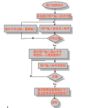 在處理用戶投訴時,要求對醫(yī)院所有服務(wù)人員分配代碼。用戶投訴時按照服務(wù)代碼進(jìn)行投訴。同時,醫(yī)院將對所有投訴用戶進(jìn)行回復(fù)。如通告處理結(jié)果,向用戶道歉等。對用戶回復(fù)時,將按照用戶在申請就診卡時留下的電話號碼進(jìn)行回復(fù)。這種也可以促使用戶留下真實(shí)的電話號碼。用戶可以到醫(yī)院電話號碼。