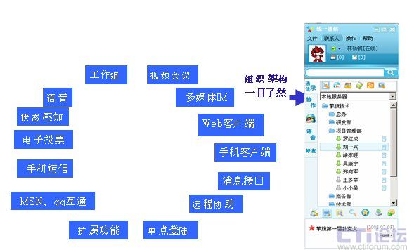 UcSTAR:Unified Communication Star,是擎旗技術(shù)研發(fā)的統(tǒng)一通訊平臺(tái),它為企業(yè)提供多種通訊手段(包括即時(shí)通信、視頻、語(yǔ)音、郵件、短信、MSN/QQ互通等);并可融合企業(yè)的各種應(yīng)用系統(tǒng)(OA、ERP、CRM、網(wǎng)站、電子商務(wù)系統(tǒng)等);將企業(yè)對(duì)外溝通、銷售和服務(wù)、對(duì)內(nèi)溝通和協(xié)作無(wú)縫整合;輕松實(shí)現(xiàn)無(wú)地域/時(shí)間限制的,可管理、可控制、可擴(kuò)展的,集團(tuán)外部溝通、服務(wù)和銷售一體化的統(tǒng)一工作平臺(tái)。此外,它也可被分離應(yīng)用為企業(yè)IM及實(shí)時(shí)協(xié)作系統(tǒng)、多媒體呼叫中心系統(tǒng)、專業(yè)級(jí)的IP視頻會(huì)議系統(tǒng)等。