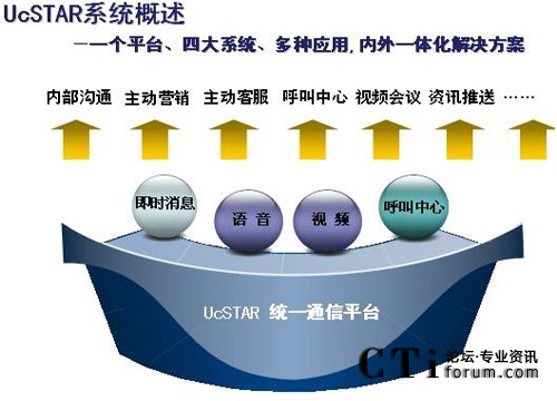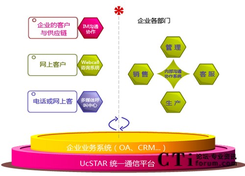 UcSTAR統(tǒng)一通信平臺(tái)是為企業(yè)提供從內(nèi)部溝通、協(xié)作與外部服務(wù)于一體的高效通信通道,并與企業(yè)的業(yè)務(wù)系統(tǒng)融合,實(shí)現(xiàn)統(tǒng)一通訊、統(tǒng)一登錄、統(tǒng)一消息、統(tǒng)一門戶的統(tǒng)一工作平臺(tái)。