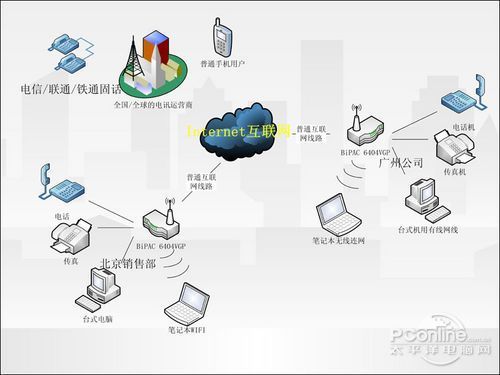 BiPAC 6404VGP其實(shí)就是一個(gè)VoIP語音網(wǎng)關(guān),VoIP就是一種把語音信號(hào)轉(zhuǎn)換成在網(wǎng)絡(luò)上傳輸?shù)臄?shù)字信號(hào)的技術(shù),它的應(yīng)用已經(jīng)非常成熟,我們經(jīng)常使用的QQ語音聊天功能也就是VoIP的一種表現(xiàn)形式。在所有大型跨國企業(yè)里我們幾乎都能看到VoIP技術(shù)的身影,這是因?yàn)殡娦胚\(yùn)營商的長途電話費(fèi)一般都不便宜,而我們企業(yè)的網(wǎng)絡(luò)使用費(fèi)一般又是包月的,通過無限包月的網(wǎng)絡(luò)打免費(fèi)的國際國內(nèi)長途電話不就是占電信的便宜嘛?